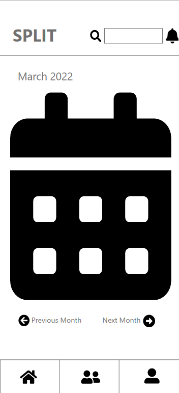 Once a user is on the home page they have a variety of controls and widgets available to them. They have a search bar to look for a person or group that exists within the app. Users also have a calendar that displays any upcoming payments in the future, granted they belong to a group. Users could cycle through months to view previous months’ and near future months’ payments. The reasoning behind the components on this home page is that those are what most people are going to want to view when they use the app.