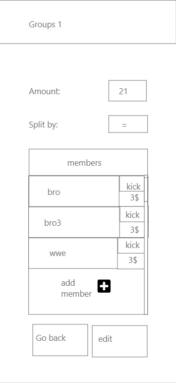 If a user decides to add a new member to a group or edit a group they are given a set of parameters to fill out. Firstly, the pool of money that is needed for rent, food, or even a Netflix payment can be set here. It also has the portion if a user wants to spilt things evenly among members or have it distributed by percentages. The user can also add people right on the create group page. This can be accessed by pressing the create a group button or when you are checking out an already existing group you can hit the edit button to bring up this page.