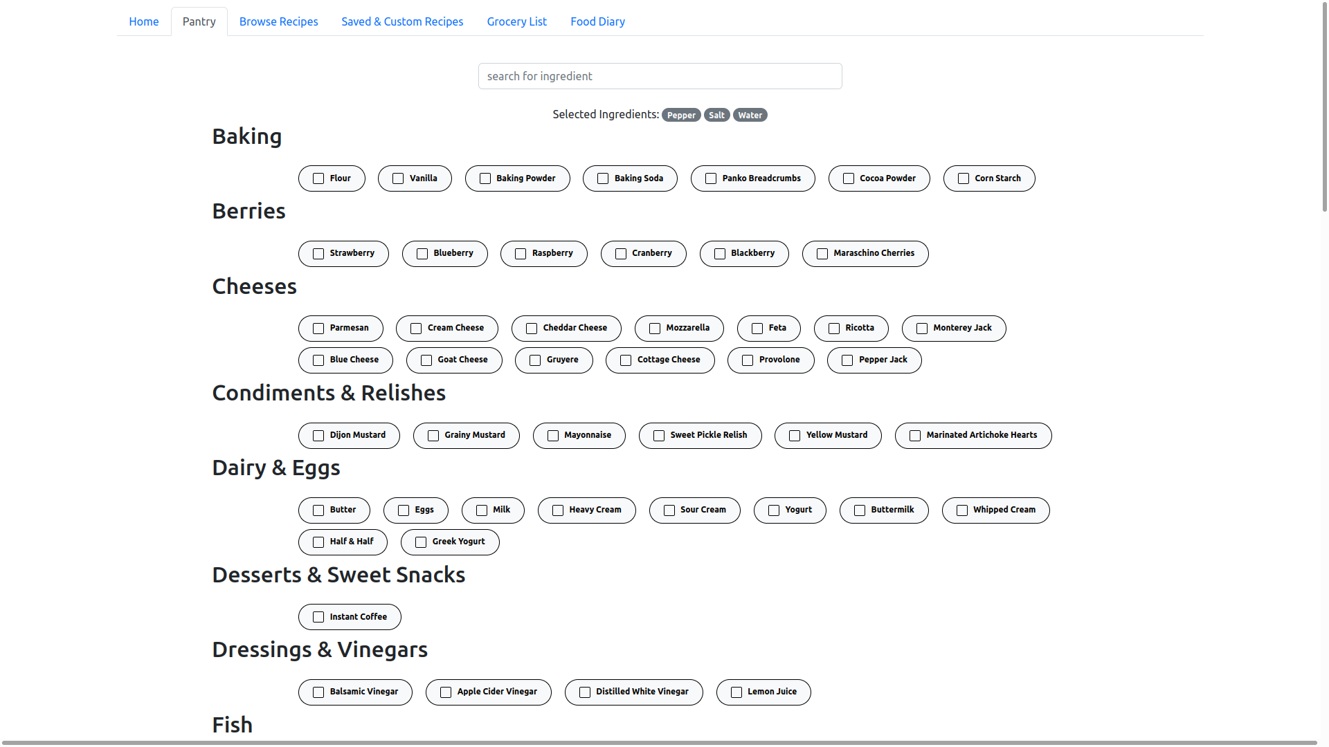 Overall, users loved the idea of the grocery list. There was some confusion over its intended purpose, further emphasizing the need for a “getting started” help page. Users liked that they were immediately shown the ingredients they were missing, and also commented that they would like some way to export this list to a checkbox-style format in which checking off the ingredient would add it to their pantry or, alternatively, a button that would automatically import all missing ingredients into their pantry.