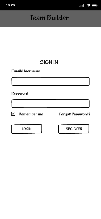 1. The first thing you will see when logging into the app is the Login page. Here we have a place for a Username and Password with The ability to Log in or Register a new account if one is not already created. |