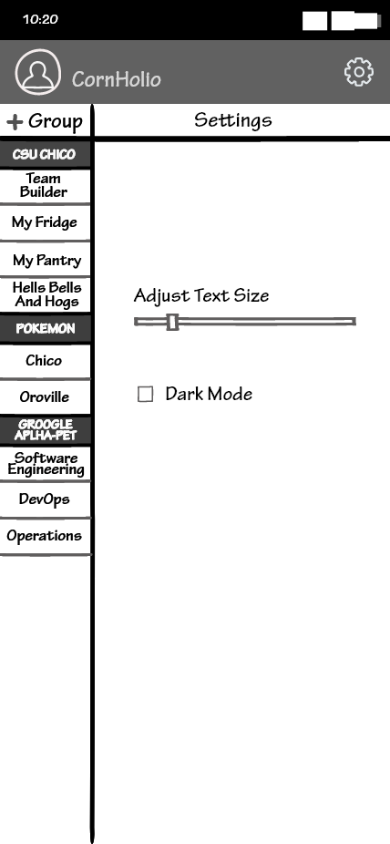 21. Tapping settings will take the user to the settings page where the font size can be changed and dark mode can be enabled. |