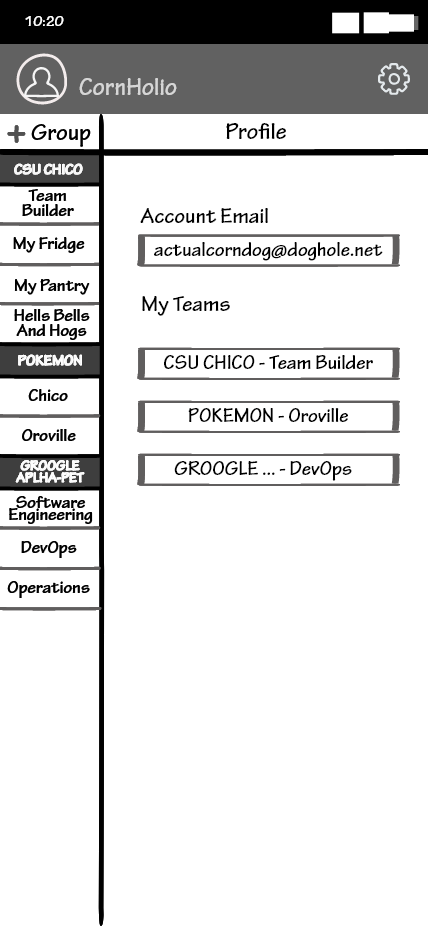 23. Tapping the profile will take the user to their information page. Here is the email associated with the account, as well as all groups and teams the user may be a part of. |