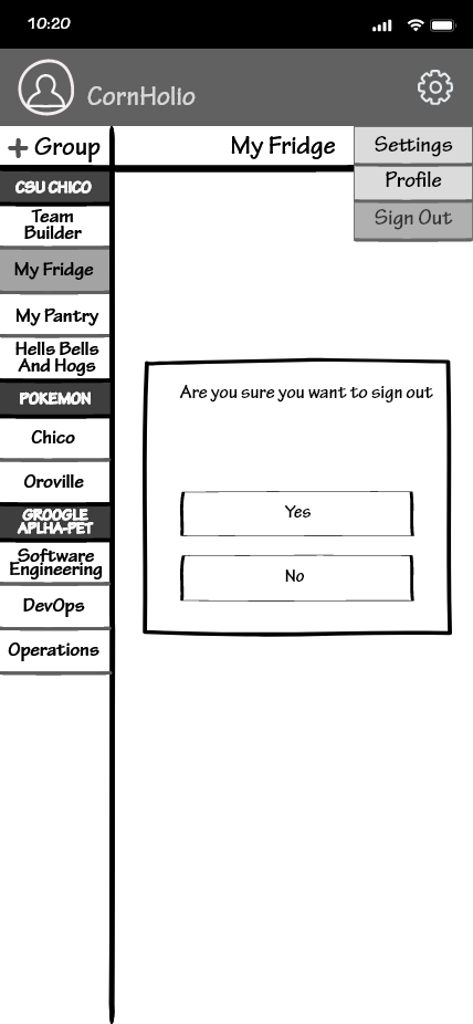 25. Selecting sign-out will prompt the user to confirm that signing out was intentional before taking the user back to the sign-in page. |