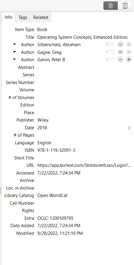 The last major usability point that I discovered in my time using Zotero was where notes and annotations are located on the PDF reader. In Zotero, notes are plain text documents that the user can attach to a source while annotations are “sticky notes”, text highlights, or screenshots that all are page-specific and can only be created and viewed within the PDF reader.