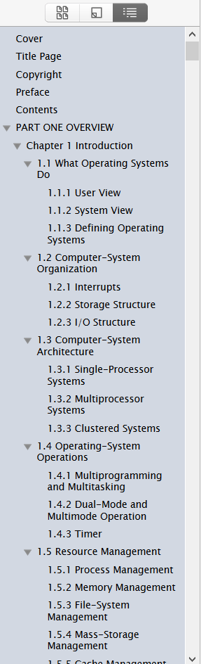 The two other options for the left panel are pages-by-screenshot and table of contents: